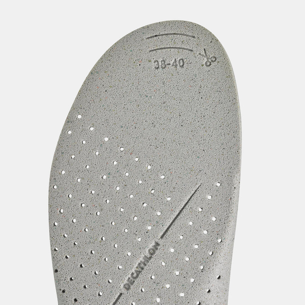 Cette semelle dispose de l’essentiel pour randonner confortablement : Un maintien grâce à sa forme anatomique au niveau du talon, une matière absorbante et un amorti sur toute la longueur du pied