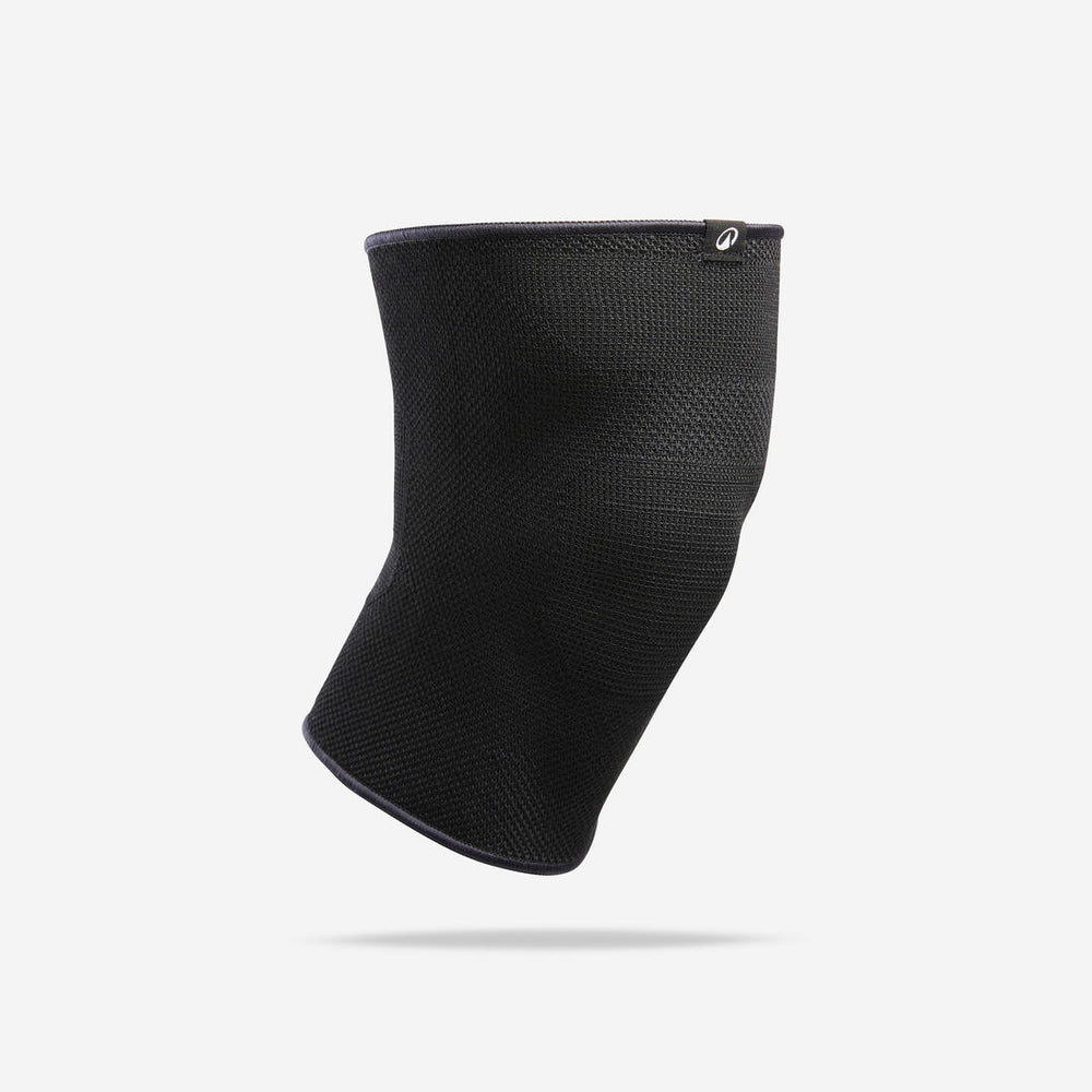 Cette genouillère apporte une compression aux genoux pendant des sports à impacts modérés tels que la marche rapide ou lors d'exercices qui sollicitent les genoux comme les squats ou les presses. Avec son tricot respirant, notamment à l'arrière du genou, elle est confortable à porter. Avec ses zones de confort au niveau de la rotule et à l'arrière du genou, elle ne gêne pas le mouvement. Peut se porter à même la peau, sauf contre-indications, ou sur un legging.