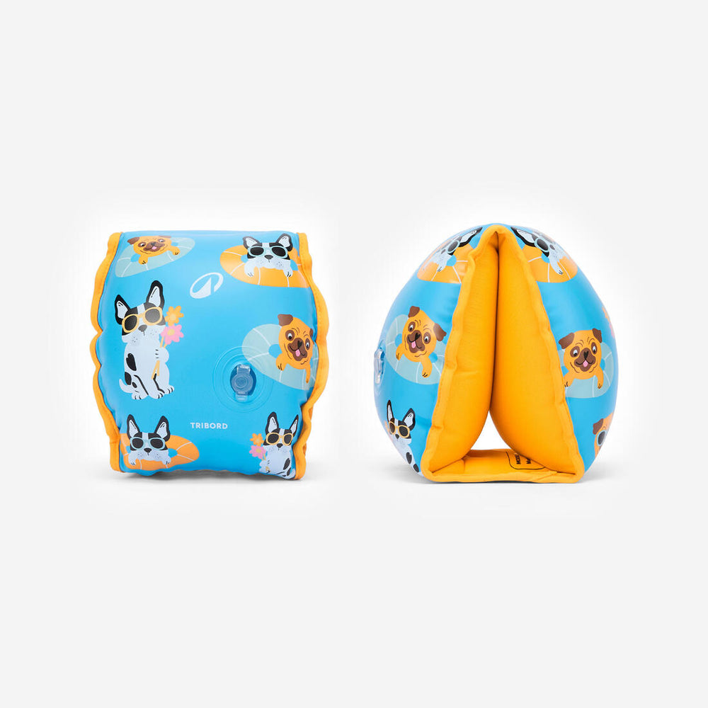 Brassards de piscine avec deux chambres de gonflage, intérieur en tissu confortable et valves avec clapets anti-retour. Idéal pour la découverte aquatique des enfants sous surveillance d'un adulte.