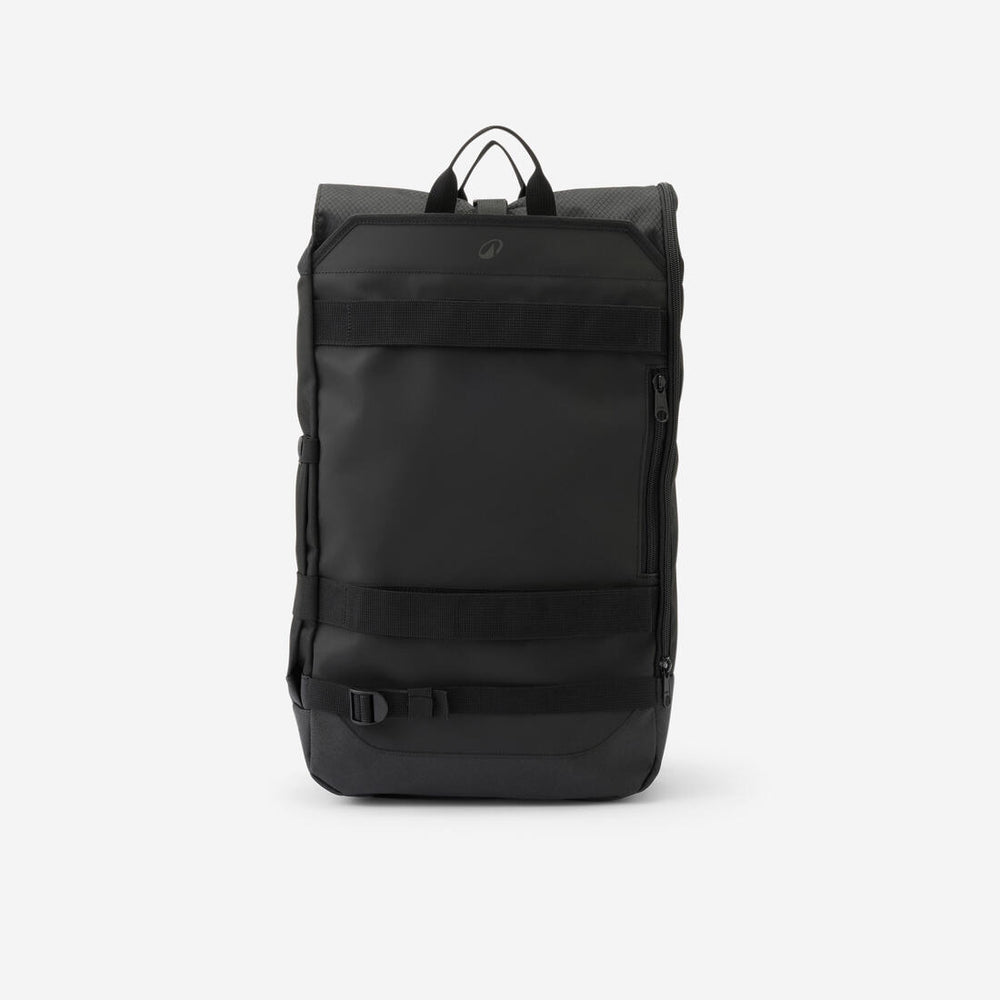 Ce sac à dos de skateboard avec outil intégré permet de transporter votre matériel, votre skate et un ordinateur. Il offre un volume évolutif, un système rolltop et trois straps de fixation.