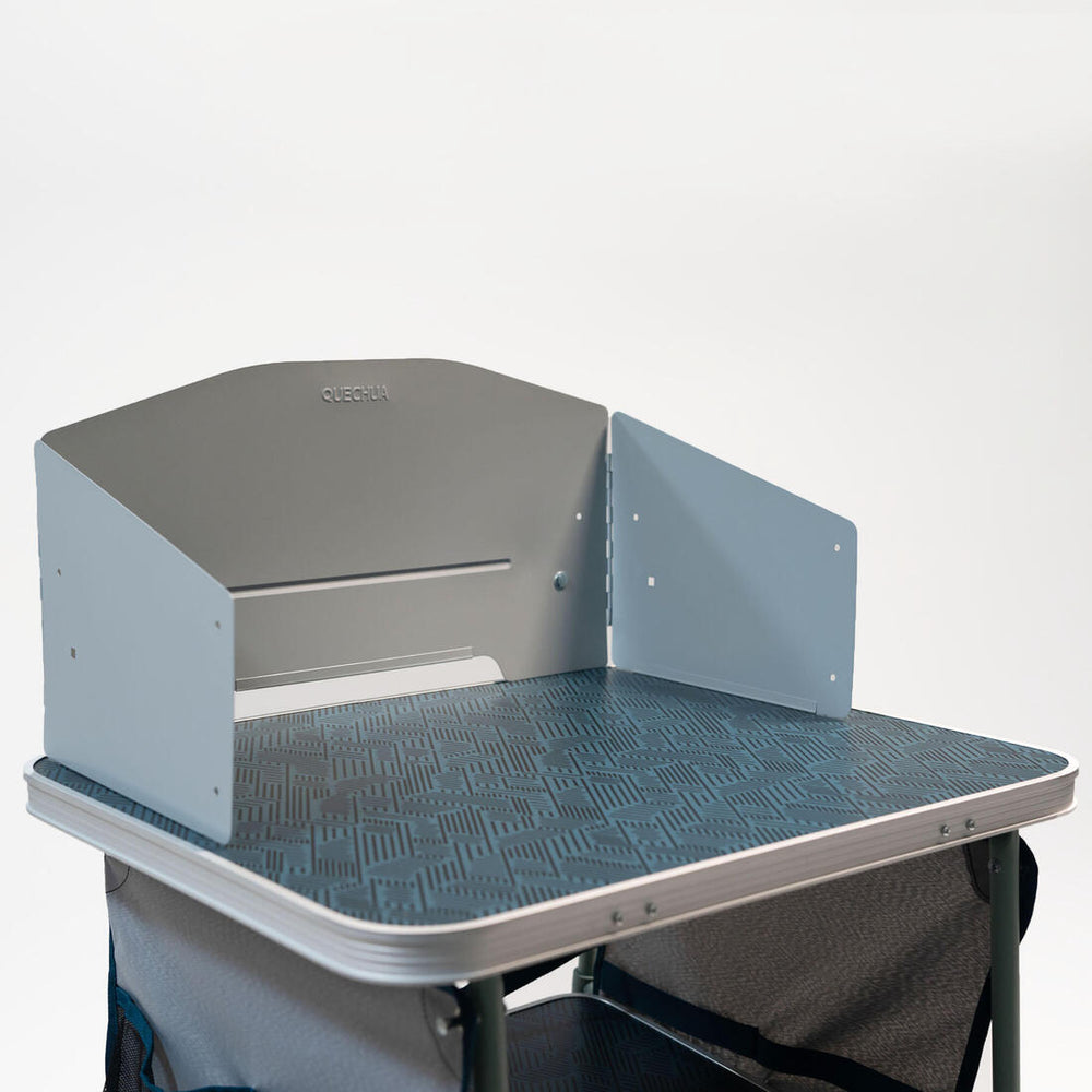 Ce pare-vent polyvalent protège votre réchaud du vent et sécurise votre espace de cuisson pour des repas confortables en camping. Il se fixe facilement sur une table ou un meuble de camping.
