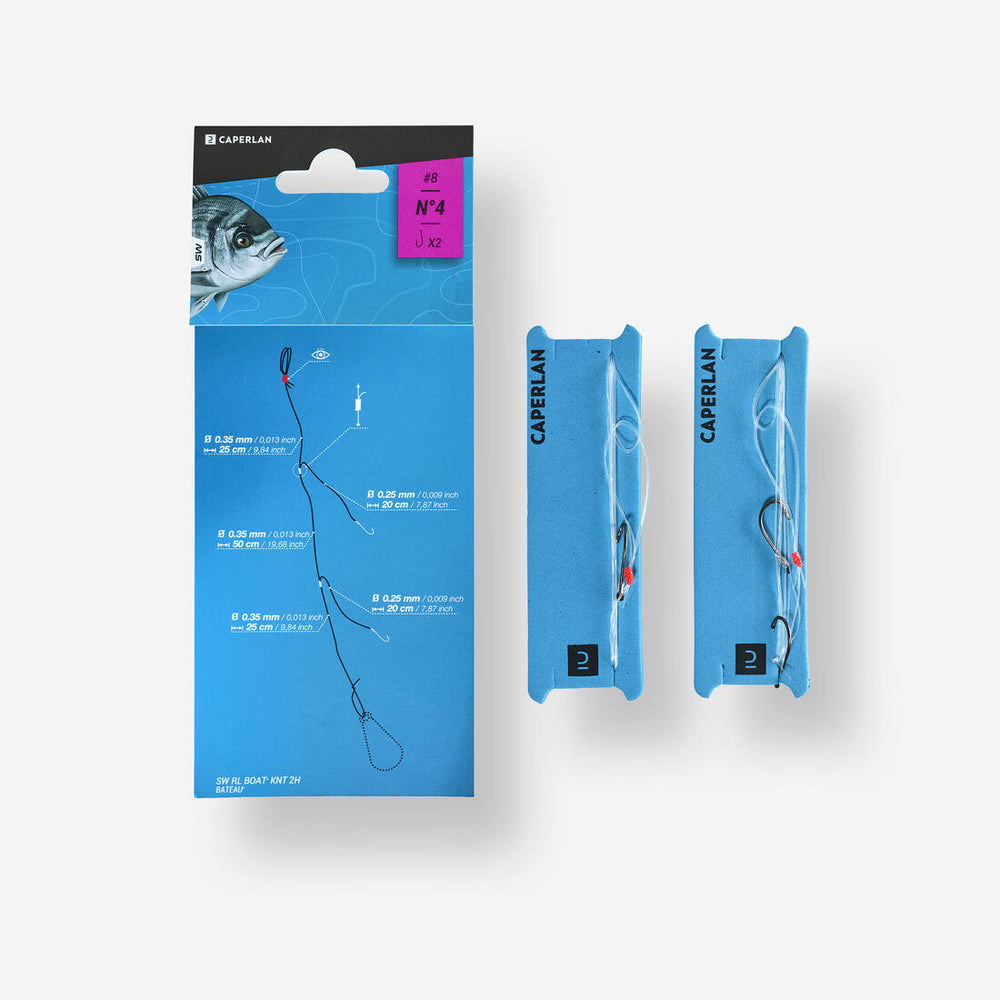 Ce bas de ligne vous permettra de pêcher au posé en bord de mer ou en bateau. Les nœuds de fixation sont doublés pour plus de solidité.