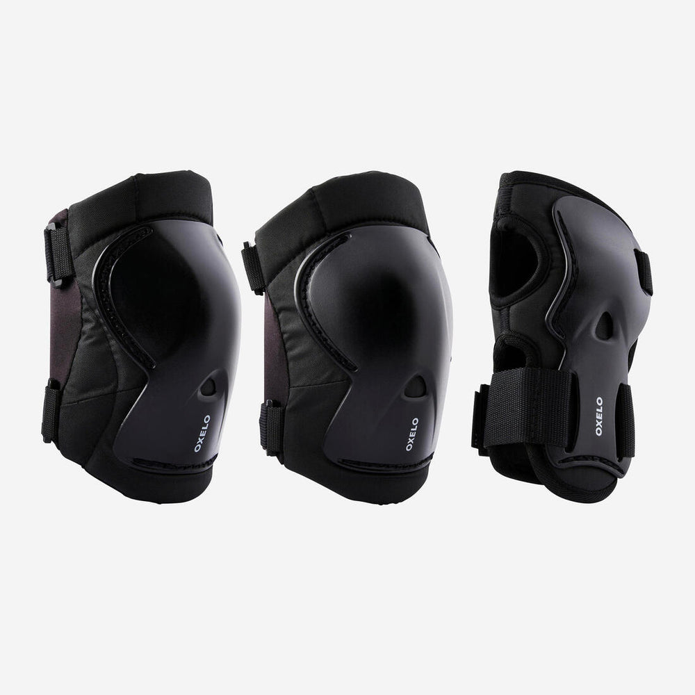 Ce set de protections ajustable inclut protège-poignets, coudes et genoux pour apporter confort et sécurité à votre enfant lors de ses débuts en roller, trottinette ou skate.