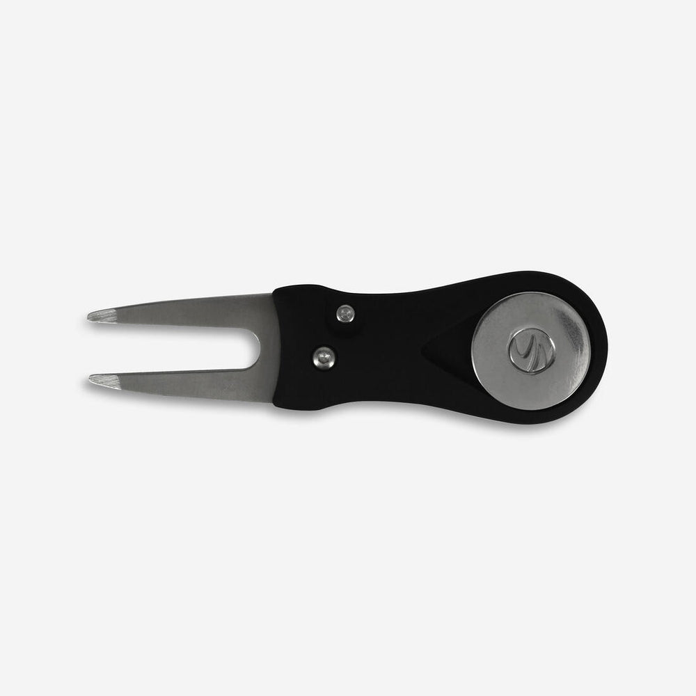 Pour un encombrement minimum, ce relève pitch se déploie automatiquement et se replie pour le ranger dans sa poche. Il possède un marque balle magnétique intégré