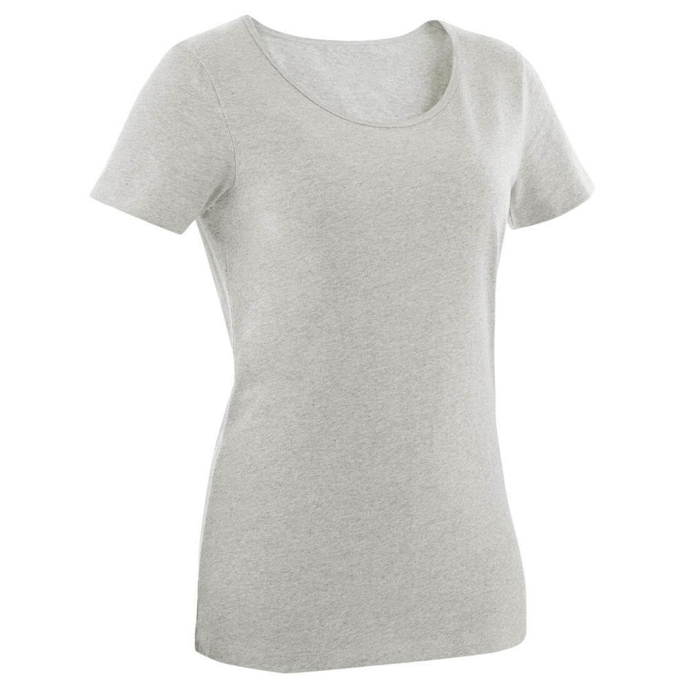 T-shirt fitness manches courtes droit coton col rond femme gris