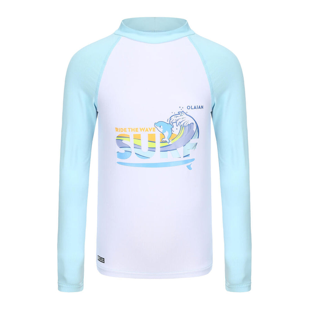 Tee shirt anti-UV junior manches longues pour protéger du soleil, même dans l'eau, et limiter les irritations au contact de la planche. Coupe ajustée pour une meilleure stabilité dans la vagues.