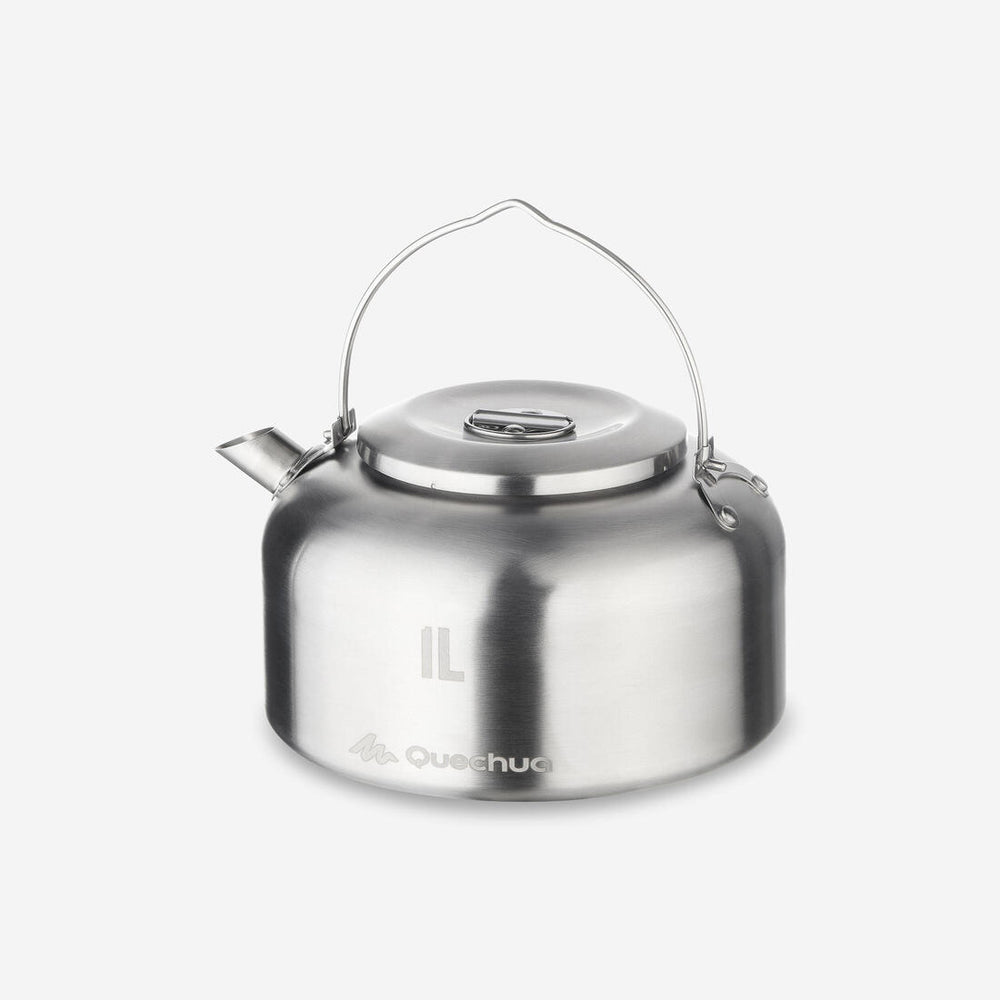 Cette bouilloire de 1 litre en acier inoxydable permet de chauffer votre eau rapidement en camping ou en bivouac. Sa construction 100% inox garantit une solidité adaptée à la randonnée.