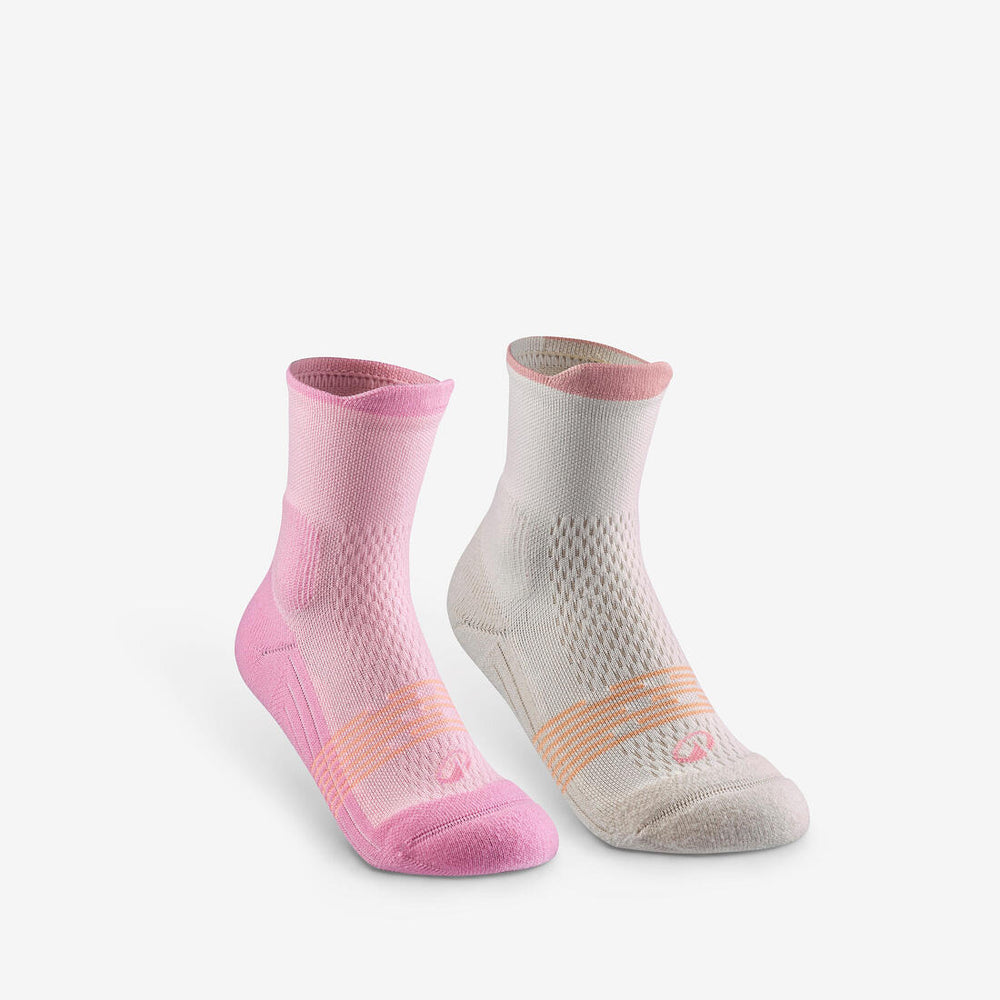 Chaussettes de randonnée mid (2 paires) 27 au 38 enfant, Hike 500 rose