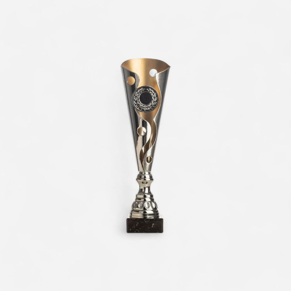 Cette coupe en argent / or vous accompagnera pour célébrer vos victoires. Elle est également personnalisable en ligne grâce à un sticker et/ou une pastille à l'effigie de votre pratique sportive.